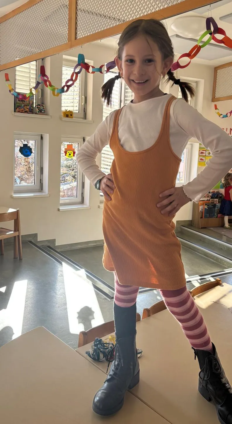 Na naši pustni zabavi smo v pisanih kostumih plesali po vrtcu. Bilo je zabavno, igrali smo igre in jedli okusne krofe!